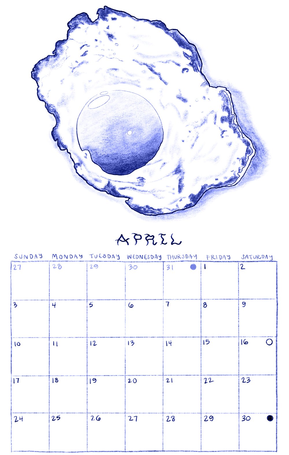 mmm... breakfast! the most important meal of the day! and calendars, an important item! now these two powerhouses are together in one item, the breakfast calendar! originally drawn and made for 2020, the year that didn't count in terms of measuring the passage of time or dates, it is reformatted and printed for 2022, a year where maybe more things will need to be written down! the breakfast calendar is drawn and designed by me and risograph printed by max seckel in new orleans. it is printed with a beautiful deep blue ink. **these calendars will most likely not arrive by christmas! hopefully by new years!! please i am doing my best thanks :) ***